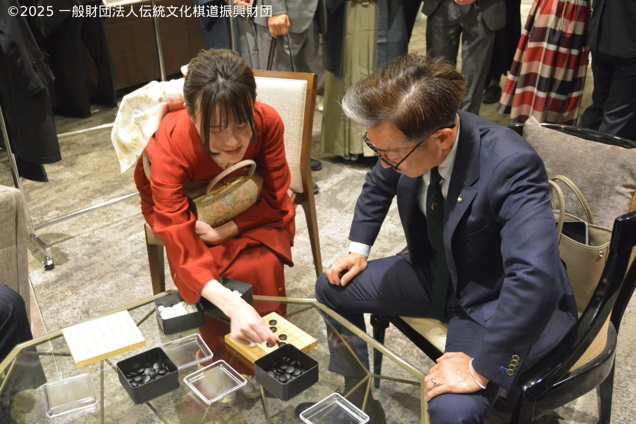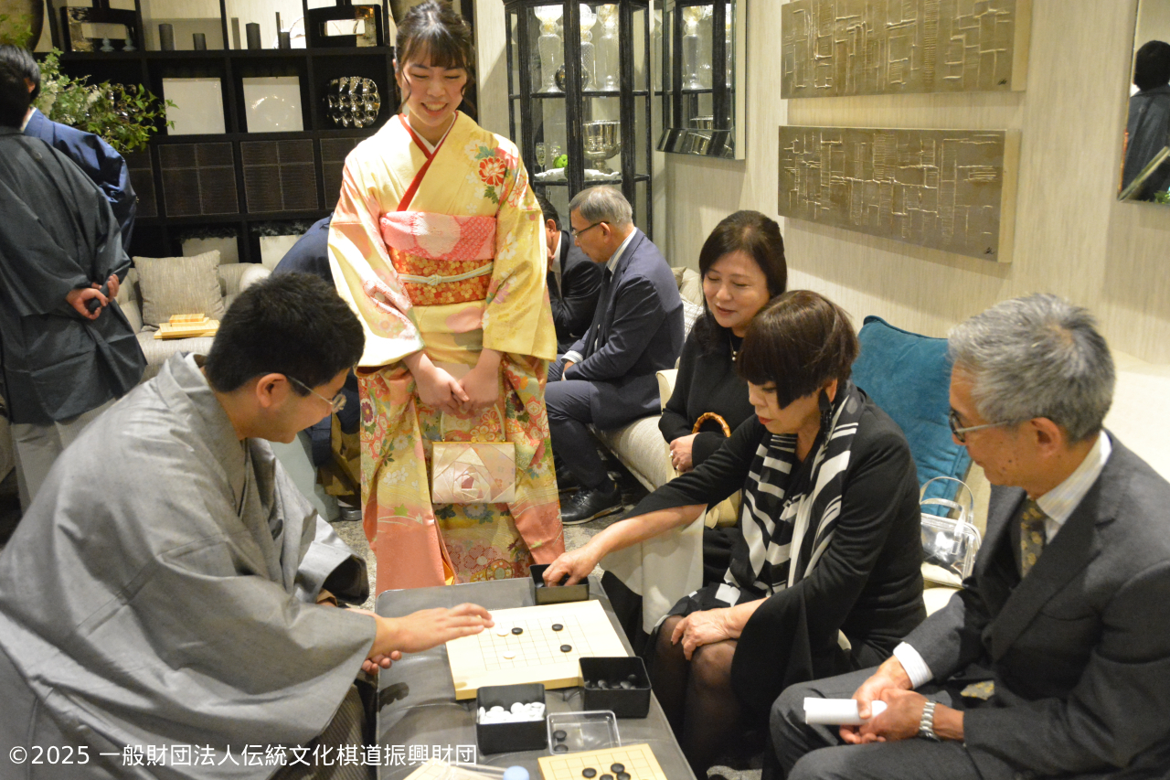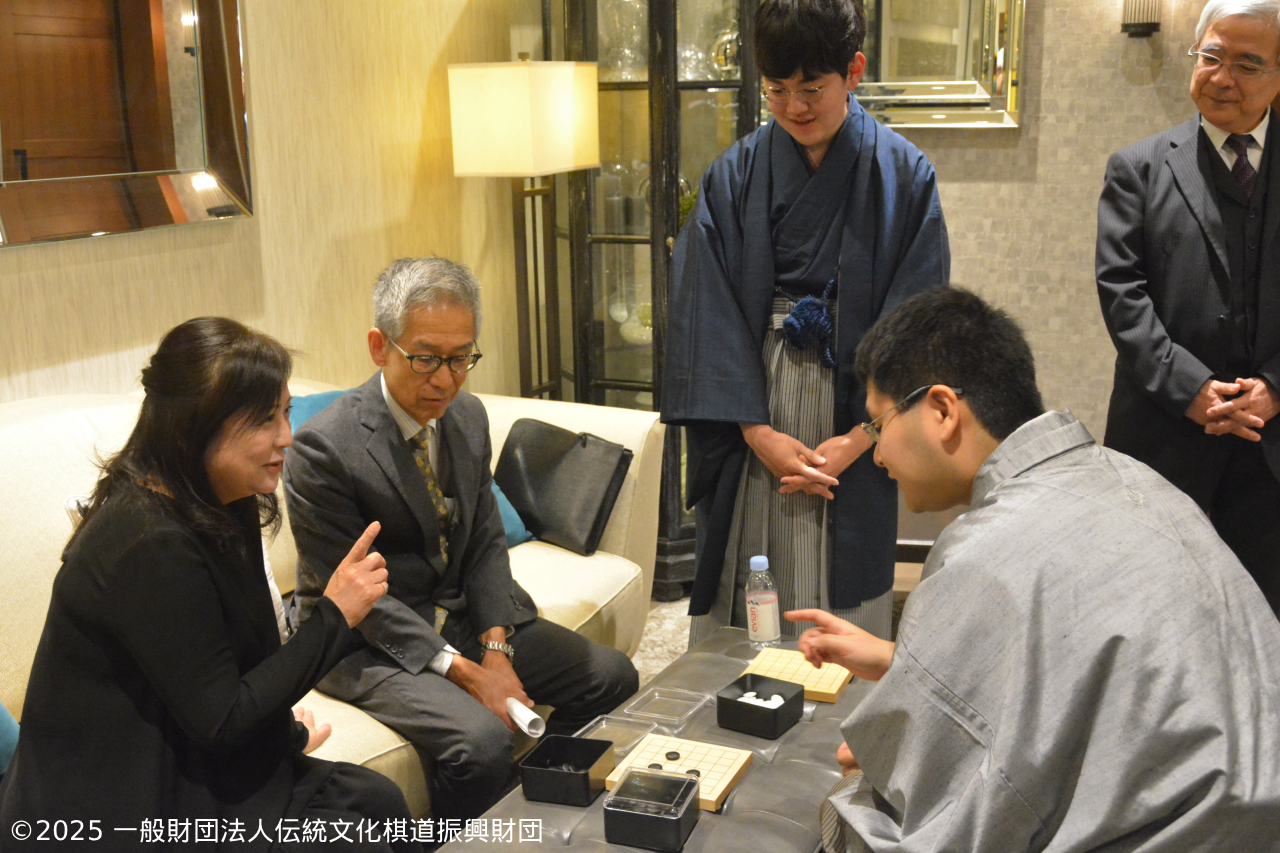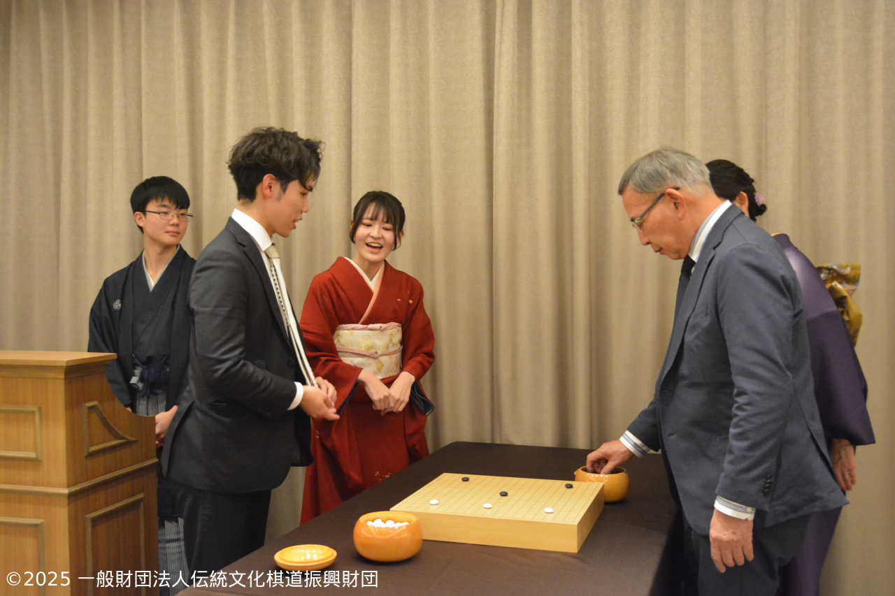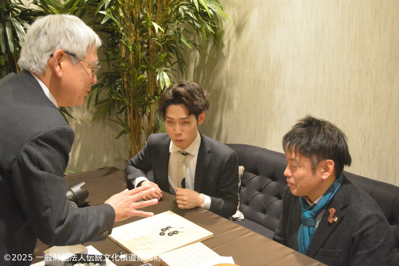 | 19:10 | ・藤澤一就 ご挨拶 ・藤澤一就一門 棋士の紹介 ・連碁 解説 棋士指導顧問 聞き手 上野愛咲美女流名人 参加者 発起人、理事20名 一門棋士 15名 |