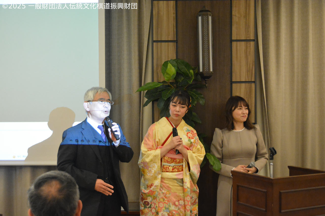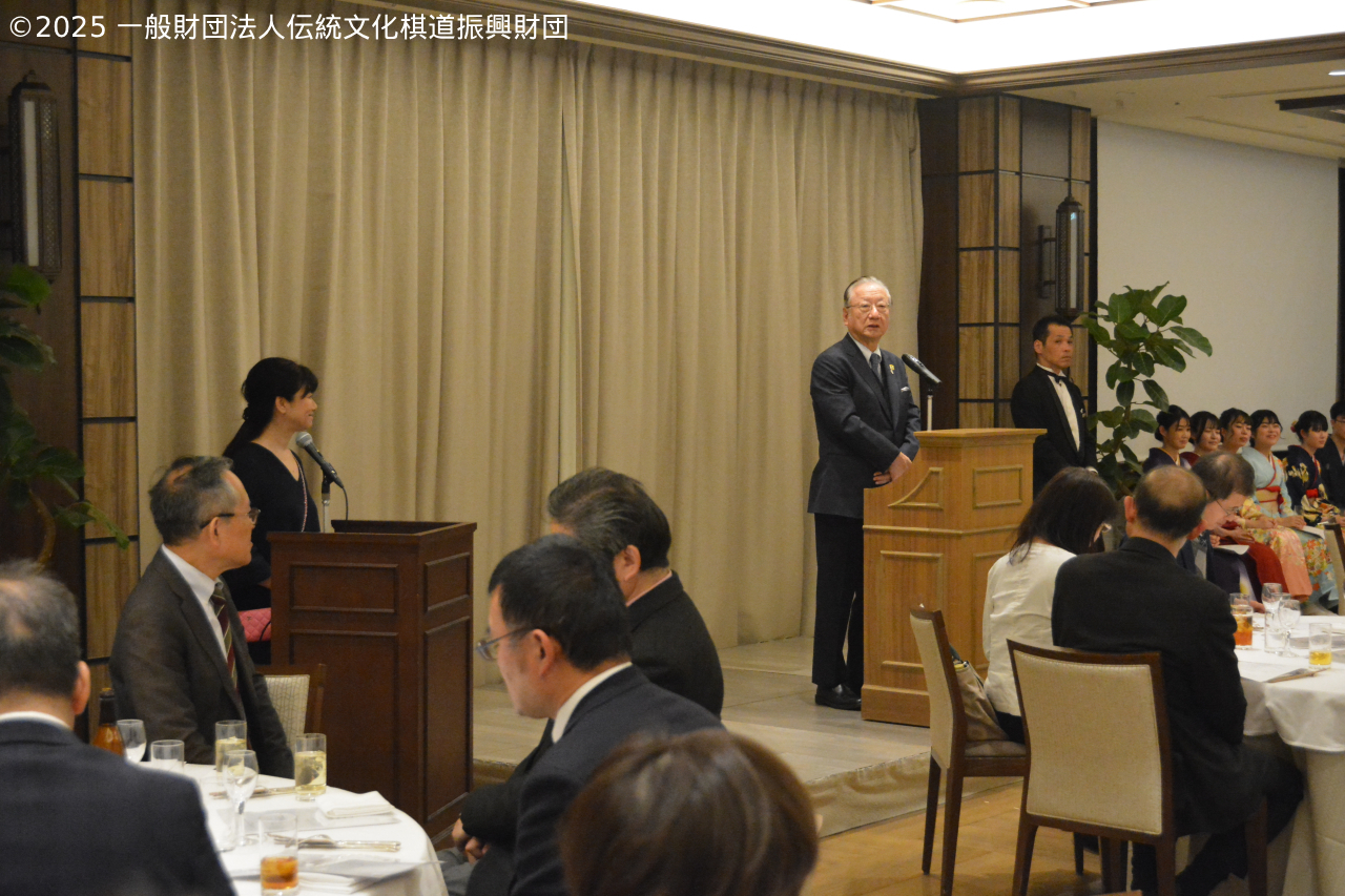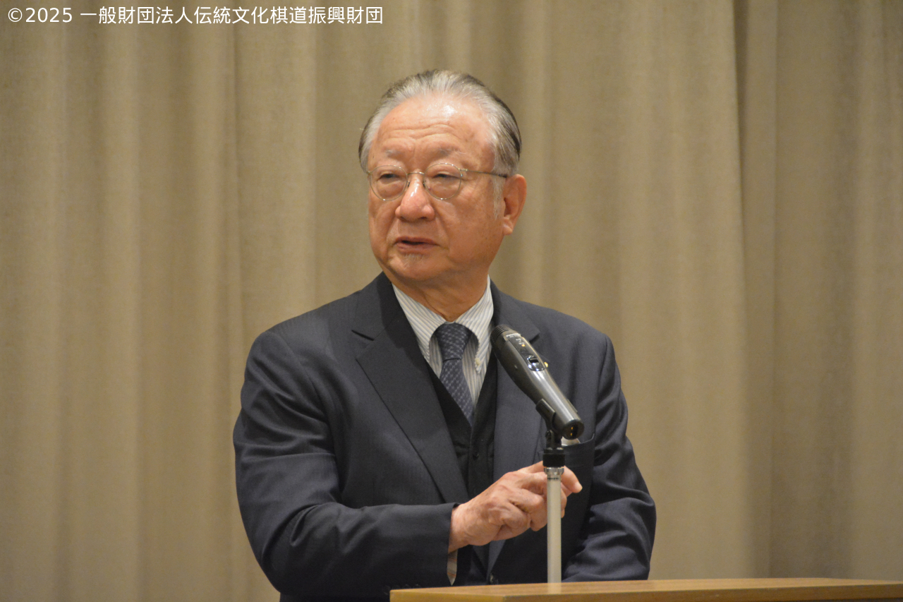 | 18:00 | 開 会 ・開会のご挨拶 本保芳明会長 ・来賓のご紹介 ・来賓のご挨拶 小林覚様(公益財団法人日本棋院 理事長) 設立のご報告(事務局長) ・藤澤一就一門後援会 活動内容説明 ・藤澤一就一門後援会 役員紹介 ・一般財団法人伝統文化棋道振興財団役員紹介、活動内容説明 ・滝久雄様ご挨拶 ・川上量生様ご挨拶 |