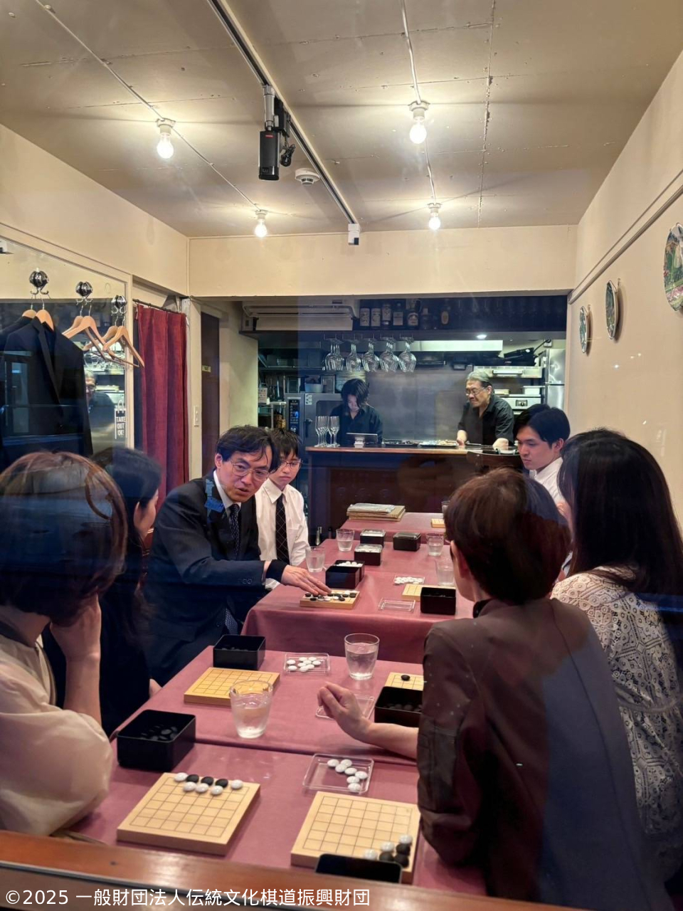 おしゃれな店内で囲碁入門講座を行った後、美味しいフレンチ・ワインを楽しみました。