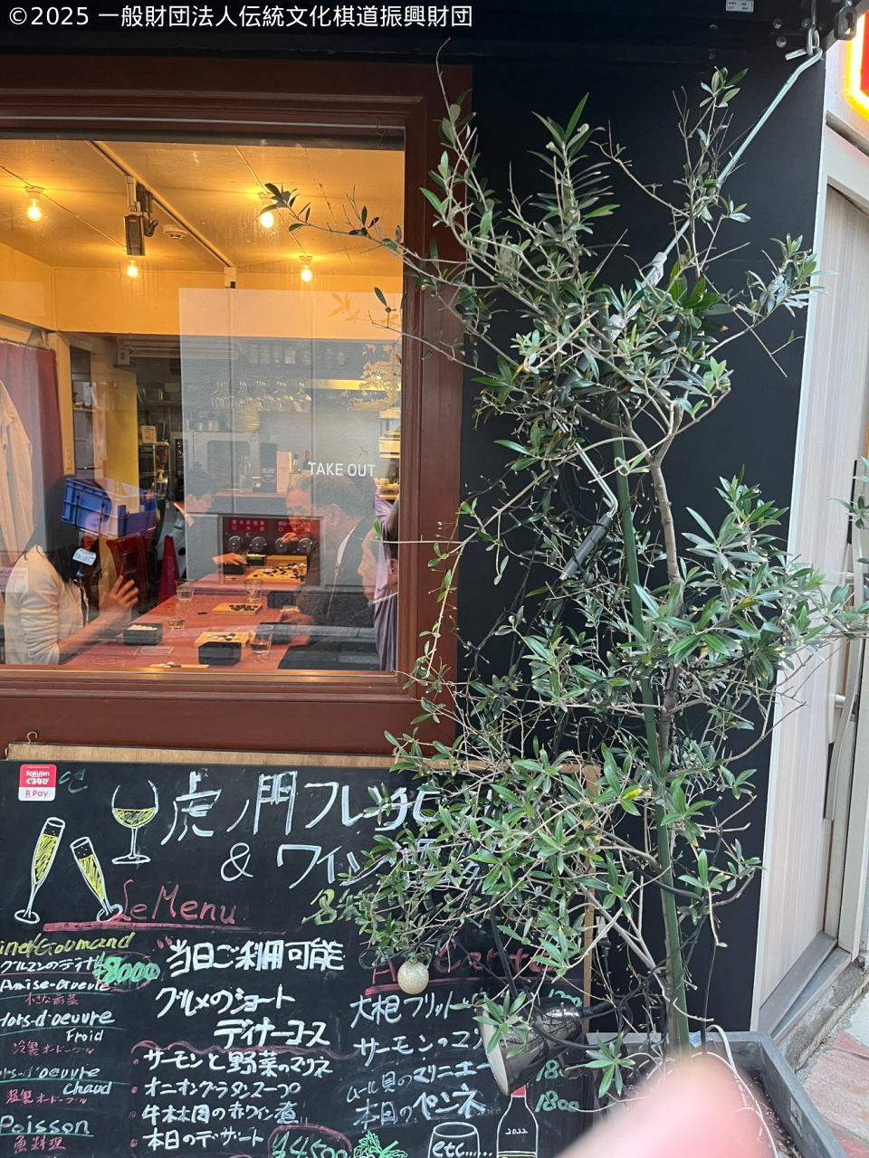 おしゃれな店内で囲碁入門講座を行った後、美味しいフレンチ・ワインを楽しみました。