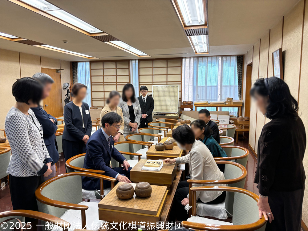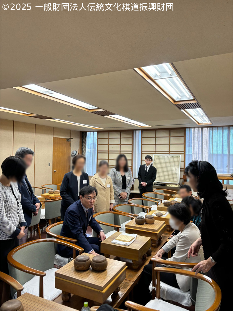 令和6年10月10日(木) 於:丸の内 日本倶楽部囲碁室 主催:一般財団法人伝統文化棋道振興財団・藤澤一就一門後援会 日本倶楽部 女性会にて、藤澤一門のプロ棋士による初心者囲碁指導を行いました。 簡単なルール説明の後、7路盤、9路盤を使って全員が対局を楽しんでくださいました。 後援会より講師派遣を協力いただき、財団が企画・運営しました。 講師:藤澤一就八段、飛田早紀二段、富田(東大3年生 囲碁部) 参加数:14名