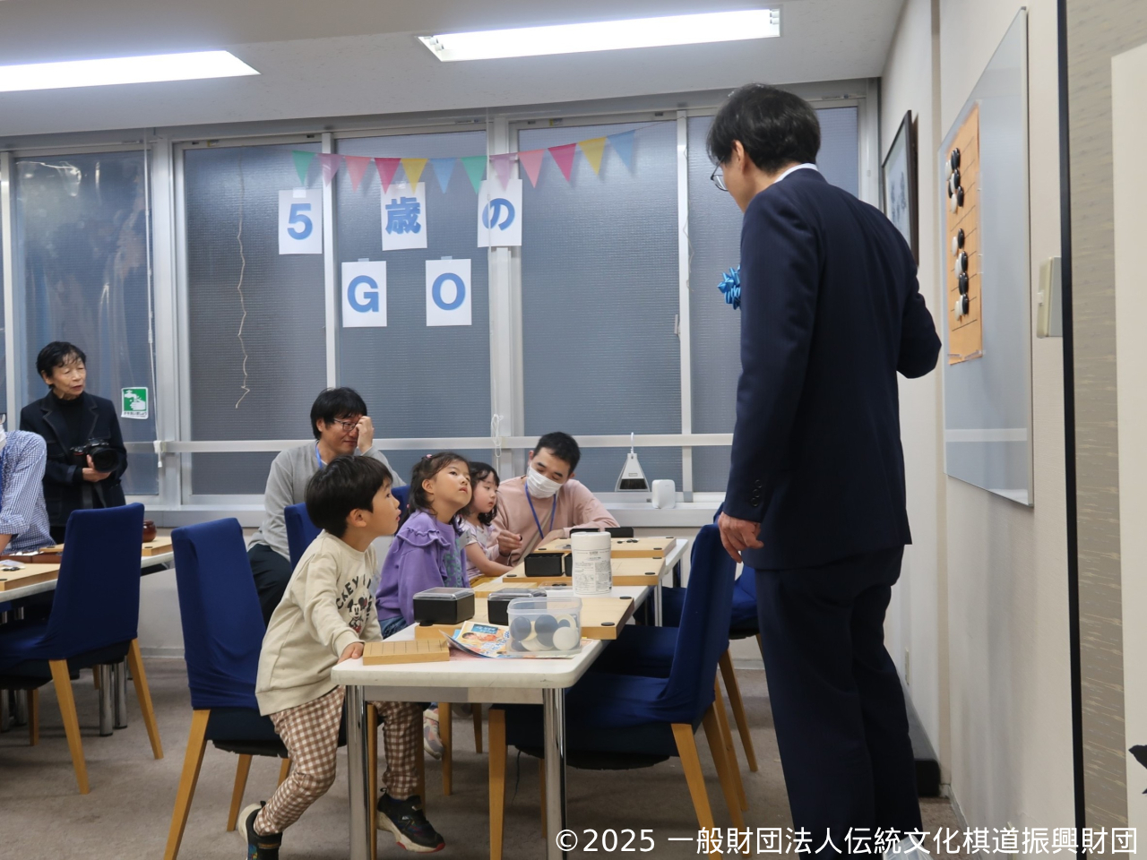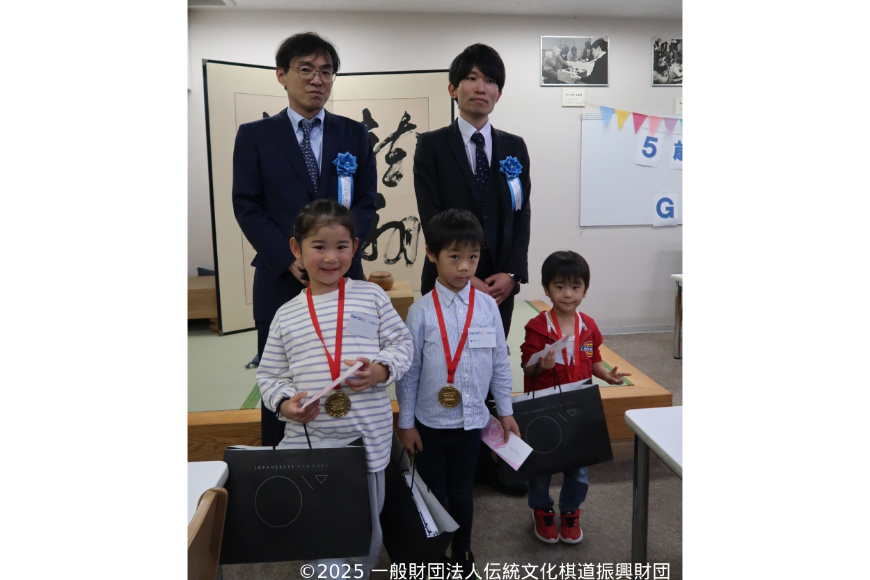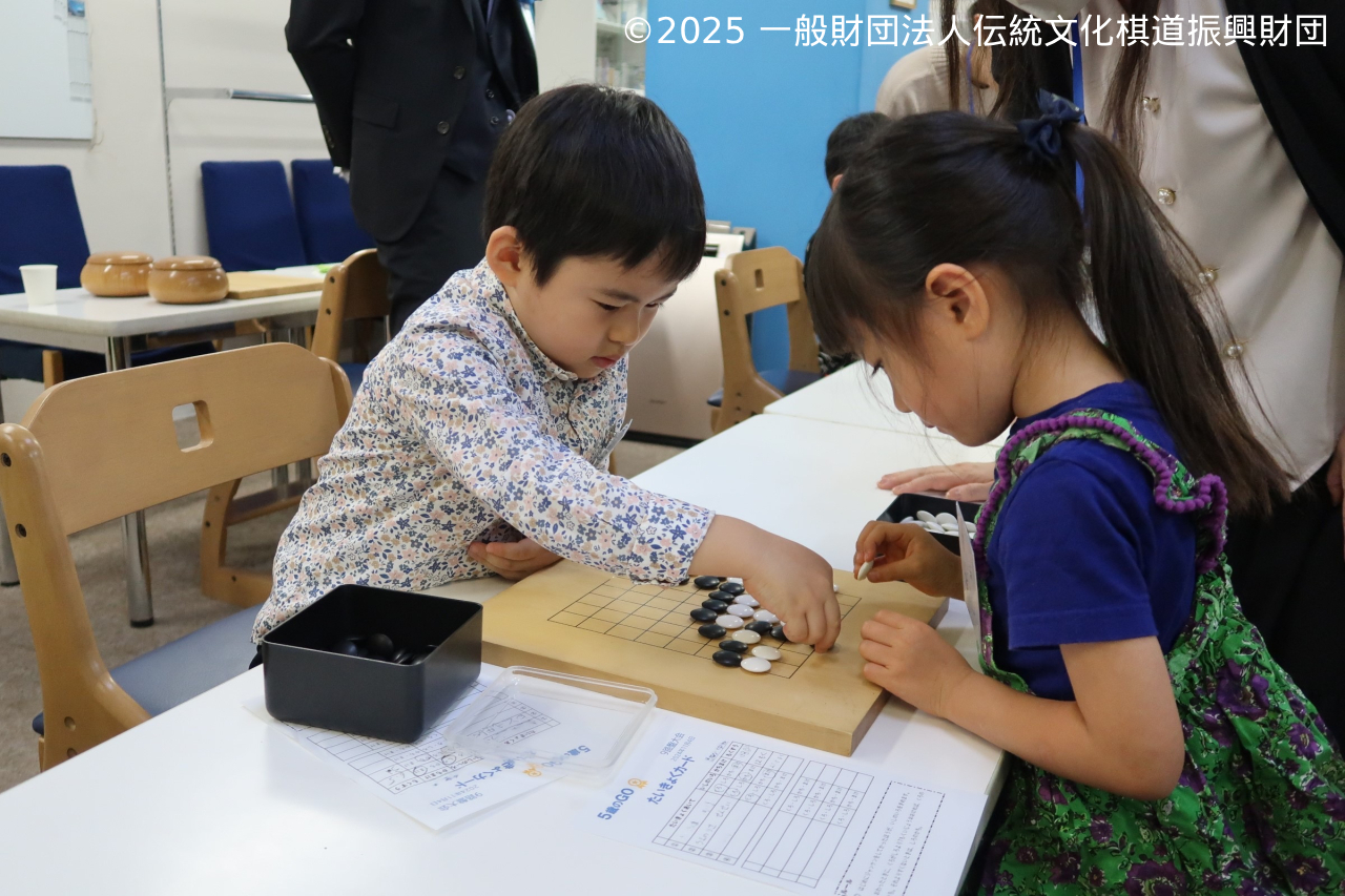 | 目的 | 囲碁を始めた子どもが初めて参加する大会として、囲碁にとって特別な年齢である5歳を対象とした大会を開催しました。子どもたちが9路盤、13路盤を使って対局を楽しみ、保護者も共に囲碁に親しむことのできる場としました。 |