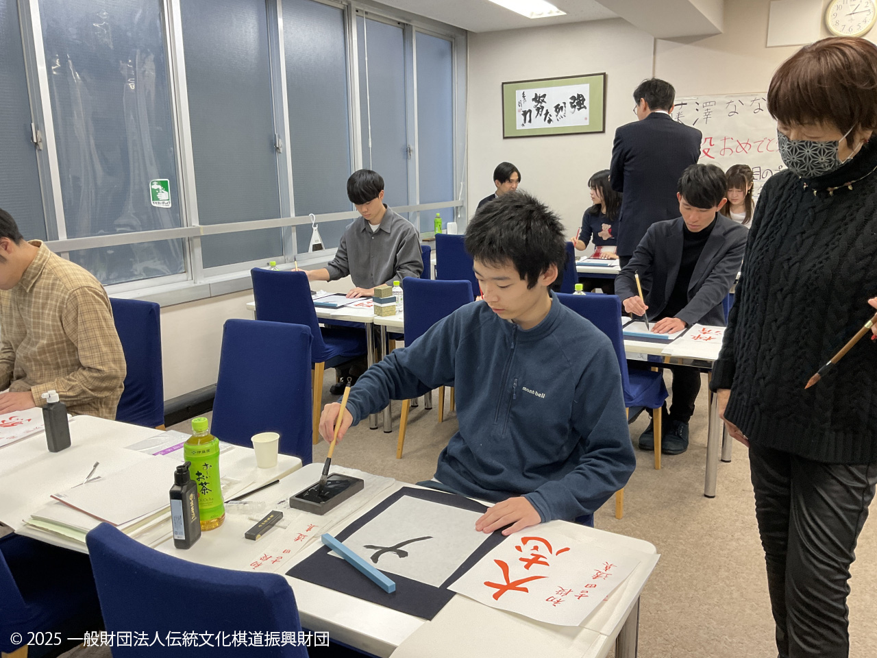 世界で活躍する人材を育成するために実社会で生きる力を醸成する、一門棋士を対象とした教養講座。後援会会員、吉田眞佐子先生による書道の会の第10回目です。
