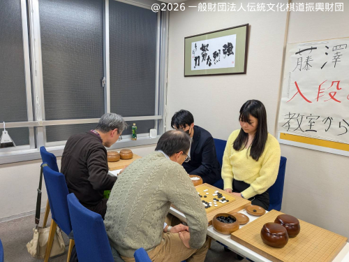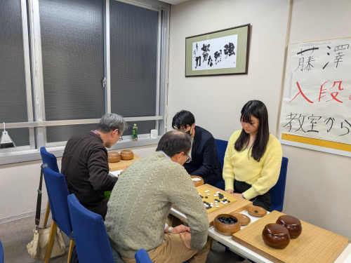 主催:藤澤一就一門後援会・一般財団法人伝統文化棋道振興財団 於 :新宿こども囲碁教室 講師:藤澤一就八段、本木克弥九段、竹下凌矢三段、藤澤ななみ初段、富田暁(東大囲碁部)、Kさん(早稲田大学囲碁部)、Fさん(元院生) 参加数:20名 各界の方にお集まりいただき囲碁会を行いました。 皆様からお預かりした会費全額を能登半島復興支援のために寄付いたします。